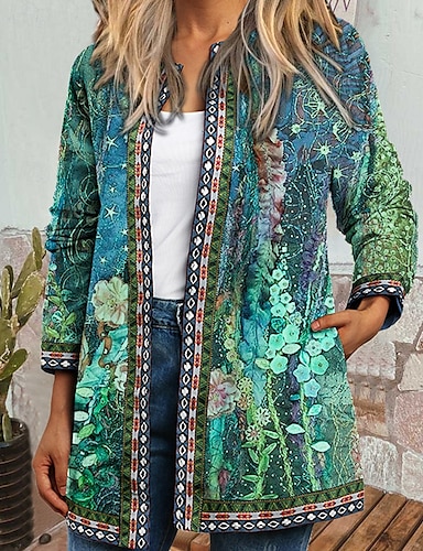 女性用 ドレッシーなダスター ドレッシーなジャケット カジュアルジャケット ストリート お出かけ 秋 冬 レギュラー コート レギュラー 保温 快適 ファッション 近代の ジャケット 長袖 フラワー ポケット ライトグリーン パープル グリーン