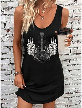 女性用 ミニドレス A ラインドレス サマードレス オフショルダードレス 旅行度假风 カジュアル 日常 ルーズフィット グラフィック ノースリーブ Uネック ブラック 夏