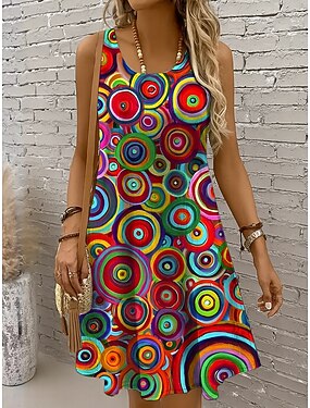 女性用 ミニドレス サンドレス A ラインドレス サマードレス 旅行度假风 カジュアル ボヘミアン パーティー 祝日 デート レギュラー グラフィック 幾何学模様 ボヘミアン ペイズリー ダマスク ノースリーブ Uネック スクープネック ルビーレッド ブルー パープル グリーン 夏 春