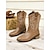 女性用ブラウンカウボーイブーツ - ロデオ、カントリーコンサート、秋冬の服装に最適な、刺繍デザインとブロックヒールのウエスタンミドルカーフブーツ
