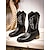 女性用ブラックウエスタンカウボーイブーツ - 乗馬、カントリースタイル、カジュアルウェアに最適なクラシックな刺繍入りミドルカーフレザーブーツ