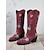 ウエスタン刺繍が施された女性用の赤いカウボーイブーツ - クリスマス、休日、カジュアルウェアに最適なボヘミアンスタイル