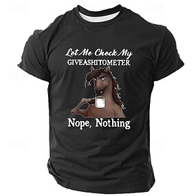 男性用 馬 おかしい Tシャツ 半袖 Tシャツ 3Dプリント クルーネック シャツ レトリ/ヴィンテージ カジュアル ストリート カジュアル バー ブラック ブルー グレー 春夏 衣類 S M L XL 2XL 3XL