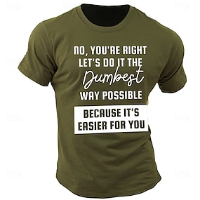 男性用 レタープリント おかしい Tシャツ ティートップ コットン100% 半袖 グラフィック シャツ ヘザーグレー ブラック アーミーグリーン 快適なTシャツ ストリート スポーツ・アウトドア ファッションデザイナーの衣類