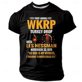 男性用Tシャツ WKRP ターキードロップ レス・ネスマン '神が私の証人です、私は七面鳥が飛べると思っていました'面白いグラフィックTシャツ 1978年