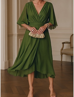 女性用 ロングドレス マキシドレス 白いドレス カジュアルドレス 二次会ドレス / カクテルドレス ウェディングゲストドレス エレガント 近代の 成熟した オフィス 日常 デート レギュラー 平織り 七分袖 Vネック グリーン 夏
