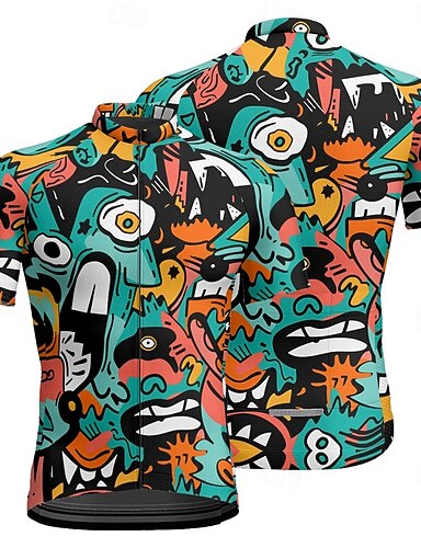 男性用 サイクリングジャージー カートゥン 半袖 バイク Tシャツ ジャージー 3つのリアポケット付き マウンテンサイクリング 速乾性 人間工学デザイン ウィッキング 高通気性 スポーツ ピンク ブルー グリーン 衣類