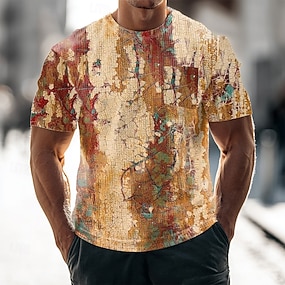 男性用 3D印刷 3D Tシャツ 半袖 Tシャツ 3Dプリント クルーネック シャツ 誇張された デザイナー パーティー 日常 祝日 イエロー 夏 春 オールシーズン 衣類 S M L XL XXL XXXL