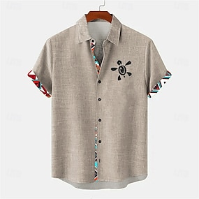 男性用 幾何学模様 リネンシャツ アロハシャツ ボタンアップシャツ 半袖 ヴィンテージレトロ バケーション 日常 祝日 夏 春 折襟 3Dプリント エスニック 襟付きシャツ ブルー グリーン カーキ色