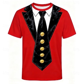 クリスマス 男性用 コスチューム Tシャツ 半袖 Tシャツ 3Dプリント クルーネック シャツ 日常 デザイナー アーティスティック バケーション パーティー ストリート ブラック ルビーレッド ブルー オールシーズン 衣類 S M L XL XXL XXXL