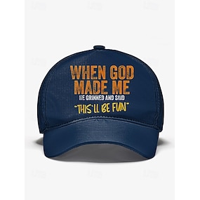 男性用の面白い刺繍入り野球帽 - 「神が私を作ったとき」調節可能なコットン製お父さん帽子、スポーツ、旅行、普段使いに最適なカジュアルなアウトドア用トラッカーキャップ