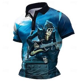 男性用 スカル ポロ 半袖 ポロシャツ 襟付きシャツ 暗い 学校 アスレイジャー デイリーウェア 3Dプリント 夏 ブルー