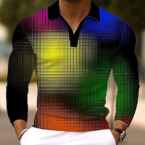 男性用 幾何学的な ライン ポロ 長袖 ポロシャツ 襟付きシャツ ビジネスカジュアル ビジネス アスレイジャー デイリーウェア 3Dプリント ボタン 春 秋 冬 レイクブルー ルビーレッド ブルー