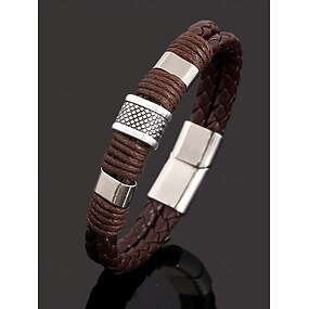 ステンレススチール留め具付きのメンズ編み込みフェイクレザーブレスレット - ヴィンテージスタイルの調節可能なリストバンド。カジュアル、普段使い、ギフトに最適です。