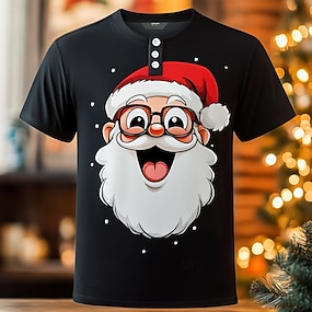 クリスマス メンズ おもしろ クリスマス ヘンリー T シャツ サンタクロース ファッション アウトドア アスレジャー 3D プリント T シャツ ストリート スポーツ アウトドア フェスティバル ブラック 半袖 ヘンリー 夏 春 衣類 アパレル S M L XL XXL