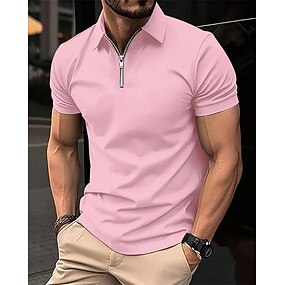男性用 クォータージップポロ ゴルフシャツ 日常 祝日 クォータージップ 半袖 ファッション ベーシック 平織り 春夏 レギュラー ブラック ピンク ネイビーブルー ライトグレー クォータージップポロ