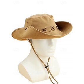 メンズウエスタンカウボーイスタイルのつば広帽子。糸通しの装飾付き。調節可能で通気性に優れ、ハイキング、キャンプ、旅行に最適です。