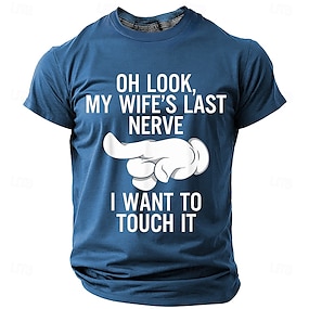 男性用 面白いスラング 妻 Tシャツ 半袖 Tシャツ 3Dプリント クルーネック シャツ ファッション 日常 カジュアル ストリート カジュアル 日常 ルビーレッド ブルー グリーン 夏 春 オールシーズン 衣類 S M L XL XXL XXXL