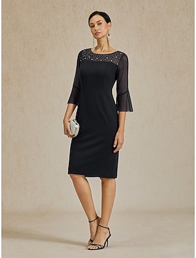 女性用 ミディドレス シースドレス エレガント レギュラー 純色 ハーフスリーブ クルーネック ブラック 夏 春
