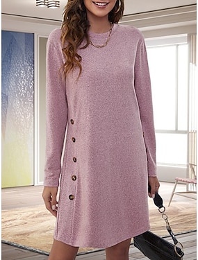 女性用 ミニドレス T シャツドレス カジュアル アウトドア 日常 祝日 レギュラー 平織り 長袖 クルーネック ブラック ピンク グレー 春 秋