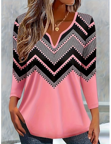女性用 Tシャツ オンブル’ グラフィック 幾何学模様 ヴィンテージ スタイリッシュ クラシック 長袖 Vネック ノッチネック レギュラートップス 日常 週末 プリント ホワイト ピンク ルビーレッド ライトブルー 春 秋 冬
