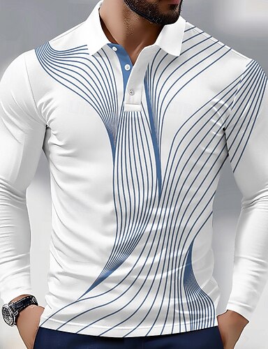 男性用 幾何学模様 ライン ポロ 長袖 ポロシャツ 襟付きシャツ ビジネスカジュアル アスレイジャー デイリーウェア 3Dプリント 春 秋 ホワイト ブルー グリーン