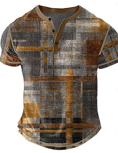 男性用 グラフィック 幾何学模様 ヘンリーシャツ ワッフルTシャツ 半袖 日常 レトリ/ヴィンテージ クラシック スポーツ・アウトドア カジュアル 祝日 春夏 オールシーズン ダークブラウン グレー ダックブルー グリーン ヘンリー ヘンリーTシャツ