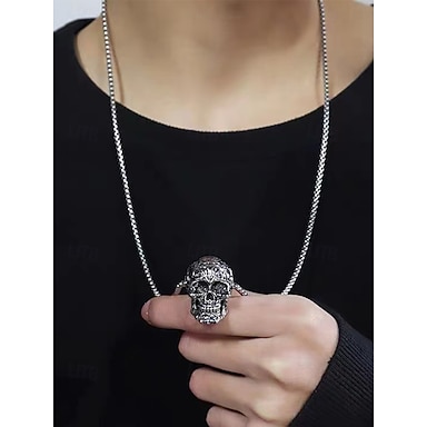 メンズハロウィンゴシックスカルペンダントネックレス - パーティー、コスプレ、普段使いのパンクスタイルにぴったりのヴィンテージ彫刻合金チェーンジュエリー