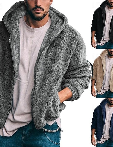 男性用 冬物ジャケット ポーラーフリースジャケット フーディージャケット 日常 バケーション 保温 ポケット 秋冬 平織り ファッション ストリートファッション フード付き レギュラー ブラック ネイビーブルー カーキ色 ダックグレー ジャケット