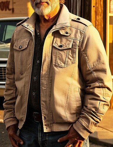 男性用 ジャケット カジュアルジャケット アウトドア バケーション ウォーム ジッパー ポケット 秋 冬 平織り ファッション ストリートファッション スタンドカラー レギュラー アプリコット ブラック アーミーグリーン ジャケット