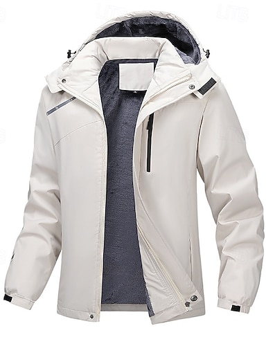 男性用 アウトドアジャケット フリースの上着 レインコート ハイキング ジャケット バケーション 日常 保温 防風 ポケット フリース 秋 冬 平織り ファッション ストリートファッション フード付き レギュラー ブラック カーキ色 アーミーグリーン グレー ジャケット
