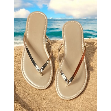 女性用メタリックストラップビーチサンダル - クッションソールを備えたミニマリストビーチサンダル。休暇、プール、普段使いに最適なカジュアルな夏スタイル。