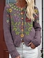 女性用 カーディガン ファッション 日常 カジュアル フラワー グラフィック リブ クルーネック ボタン プリント 長袖 レギュラートップス ニット アウトドア 日常 デート パープル 秋 冬