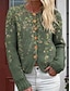 女性用 カーディガン ファッション 日常 カジュアル フラワー グラフィック リブ クルーネック ボタン プリント 長袖 レギュラートップス ニット アウトドア 日常 デート グリーン 春 秋