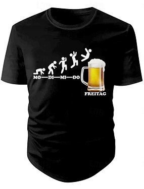 男性用グラフィックTシャツ、面白い平日の進化から金曜日のビールデザイン、ライフスタイルユーモア短袖Tシャツ