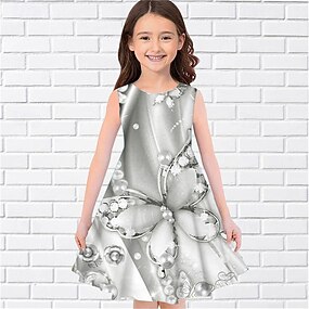 女子 3D バタフライ ドレス ノースリーブ 夏 春 バケーション 日常 祝日 プリンセス 美しい 甘い 子供 4〜12年 カジュアルドレス A ラインドレス 膝丈 レギュラー