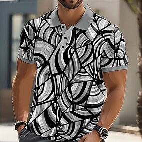 男性用 幾何学模様 抽象的 ポロ 半袖 ポロシャツ ラペル ビジネスカジュアル ビジネス アスレイジャー デイリーウェア 3Dプリント ボタン 夏 ブラック ダークブルー ダックパープル
