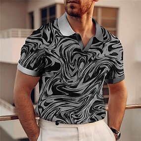 男性用 幾何学模様 ゴルフシャツ 半袖 ポロシャツ 襟付きシャツ ビジネスカジュアル バケーションウェア フォーマルウェア フェスティバルウェア ボタン 3Dプリント 夏 パープル カーキ色 グレー