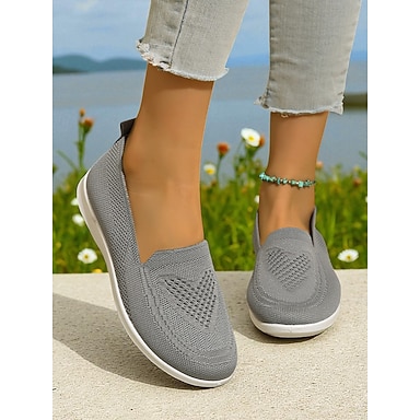 レディース フライニット スリッポン スニーカー - ウォーキング、ショッピング、休暇に最適な軽量で通気性のあるカジュアルフラットシューズ