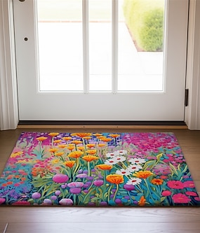 カラフルな花の絵が描かれた玄関マット、フロアマット、洗えるラグ、キッチンマット、滑り止め、耐油ラグ、屋内屋外マット、寝室装飾、バスルームマット、玄関ラグ