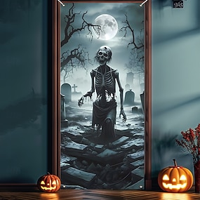 Halloween ドアカバー 屋外バナー スケルトン 3D ダークパンクゴシック パーティー 屋外 撮影背景 玄関 ウォールポーチ 装飾壁ドア背景