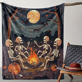 ハロウィン フリース スローブランケット ソファ用 スケルトン 3D ダーク パンク ゴシック スタイル パーティー ソファベッド 装飾 暖かいブランケット ホームデコレーション