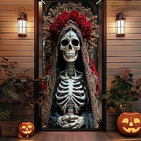 ハロウィン ドア装飾 ドアカバー 死者の日 ドアタペストリー ドアカーテン 装飾 バックドロップ ドアバナー 玄関用 ファームハウス ホリデーパーティー 屋内屋外 decor supplies