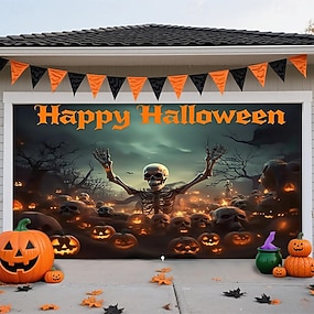 Halloween ガレージドアカバー 大きな吊り下げ スケルトン カボチャ ダークパンクゴシック パーティー 屋外 撮影背景 YD(ヤード) お化け屋敷 装飾壁ドア背景