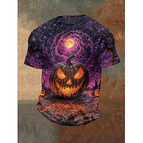男性用 ハロウィンシャツ カボチャ コウモリ クルーネック 衣類 3Dプリント アウトドア 祝日 テーマパーティー ハロウィーンパーティー 半袖 プリント ヴィンテージ ハロウィーン