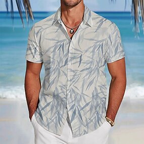 男性用 シュロの葉 熱帯植物 シャツ アロハシャツ ボタンアップシャツ 半袖 ハワイアン リゾート バケーション 祝日 ビーチウェア 夏 春 折襟 3Dプリント 襟付きシャツ グレー