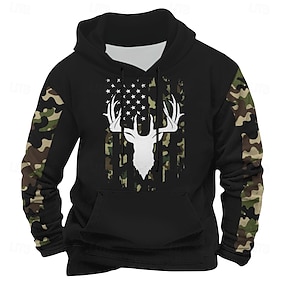 男性用 カモフラージュ グラフィック パーカー フーディーズ スウェットシャツ ストリートファッション デザイナー 長袖 フード付き スポーツ 日常 祝日 アーミーグリーン ルビーレッド レースアップ プリント 春 & 秋 デザイナー