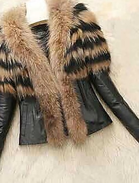 女性用 レザージャケット 保温 快適 ポケット ファッション カジュアル 縞 バケーション ストリート カジュアル デイリーウェア ショート Vネック レギュラー 長袖 アウターウェア ブラックとホワイト ブラック ブラウン 秋 冬