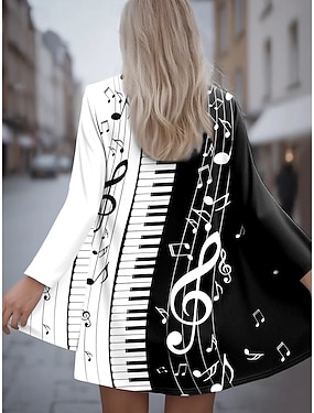 女性用 カジュアルジャケット 保温 快適 不規則な裾 オープンフロント ヴィンテージ ファッション カジュアル 快適 幾何学模様 ストリート カジュアル 日常 ロング ノーカラー レギュラー 長袖 アウターウェア ブラック ホワイト イエロー 秋 冬