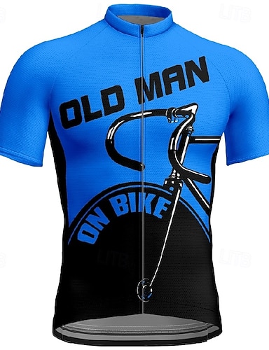 男性用 サイクリングジャージー 幾何学的な 文字&番号 半袖 バイク ジャージー トップス 3つのリアポケット付き マウンテンサイクリング ロードバイク 速乾性 反射性ストリップ 後ポケット 吸汗性 スポーツ ブラック レッド ブルー 衣類